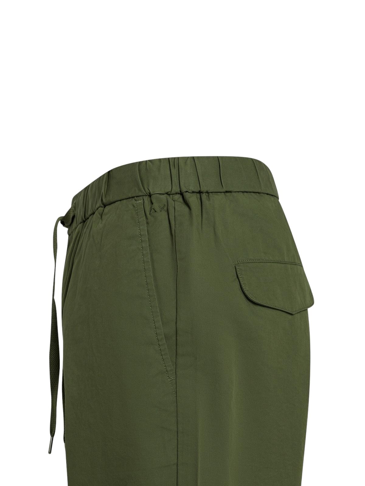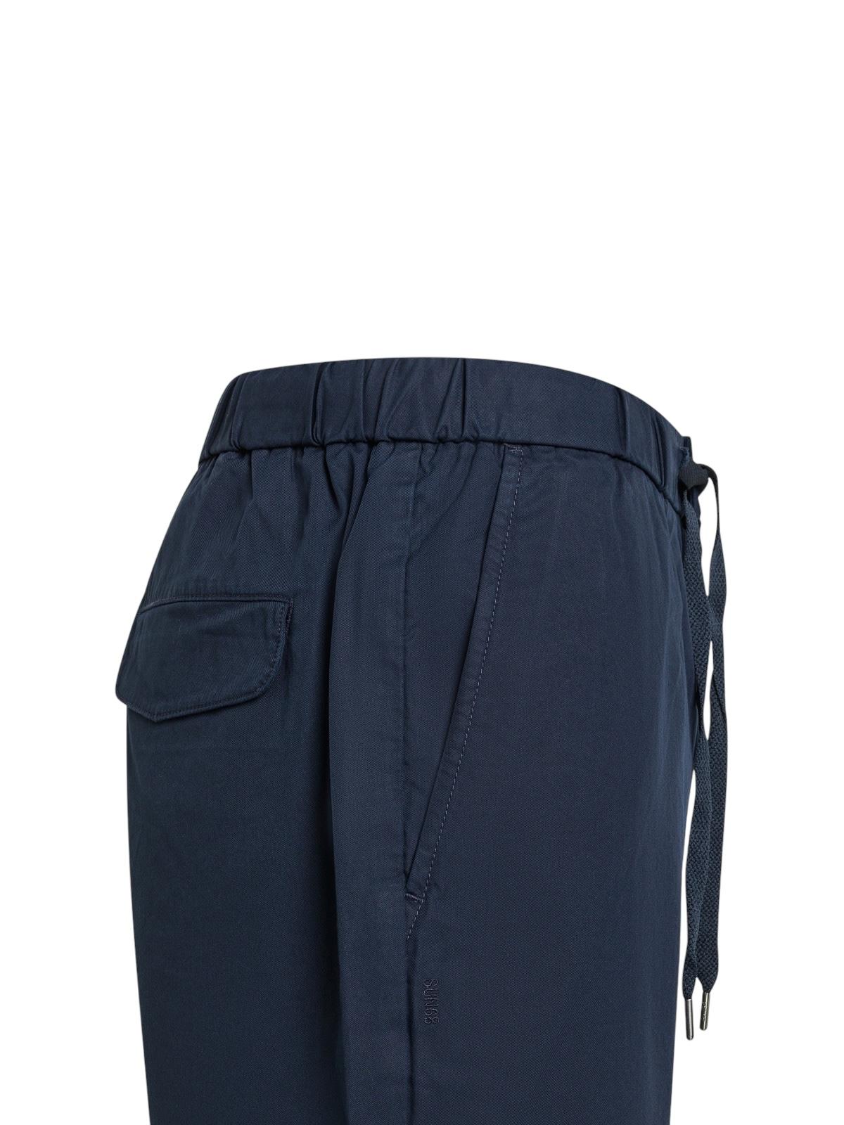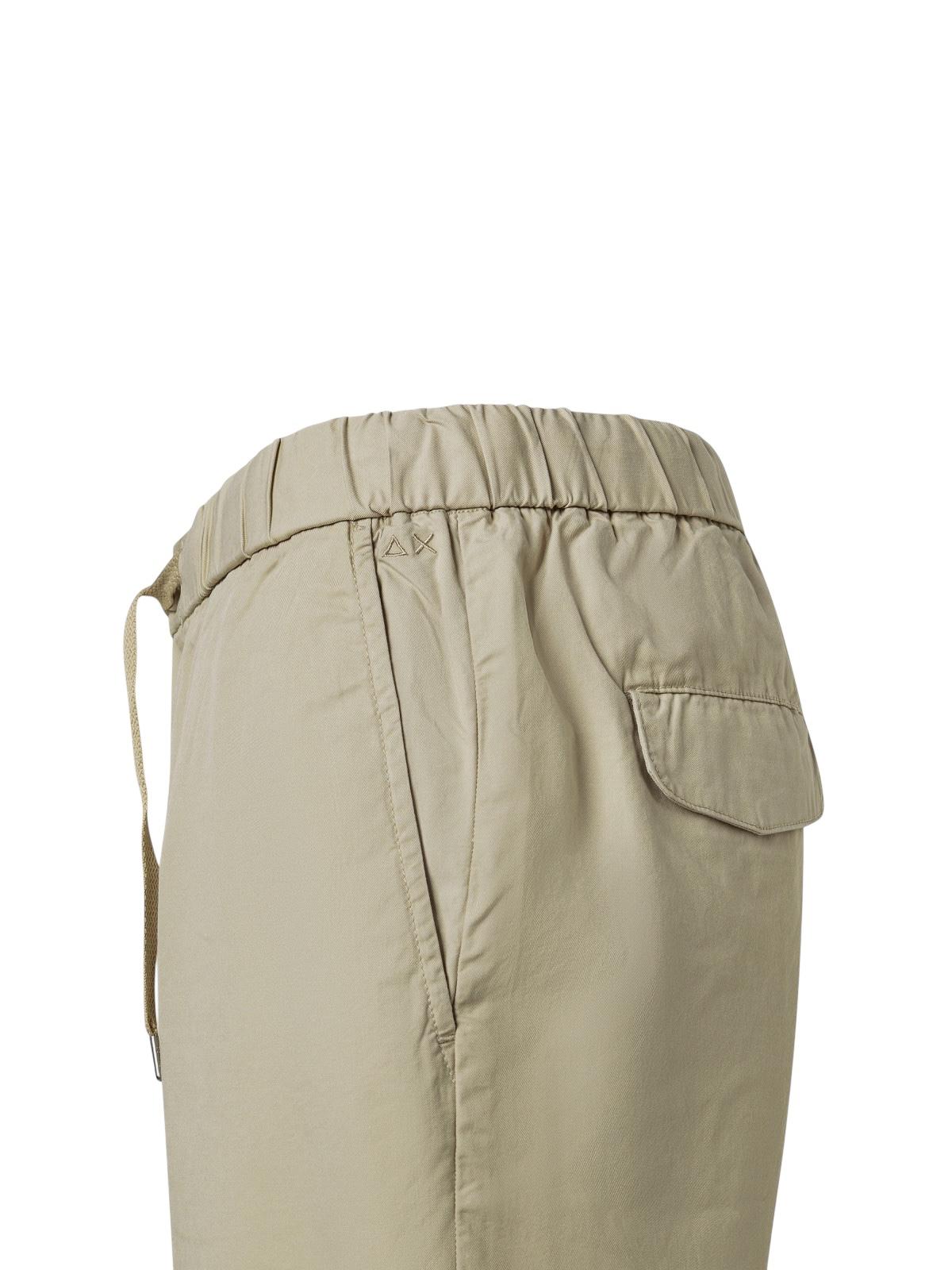 taglio contemporaneo e dettagli loghi, in misto cotone, elastico con coulisse in vita, tasche sui fianchi e con patta sul retro, chiusura con bottone e zip coperta, logo SUN68 ricamato sul lato