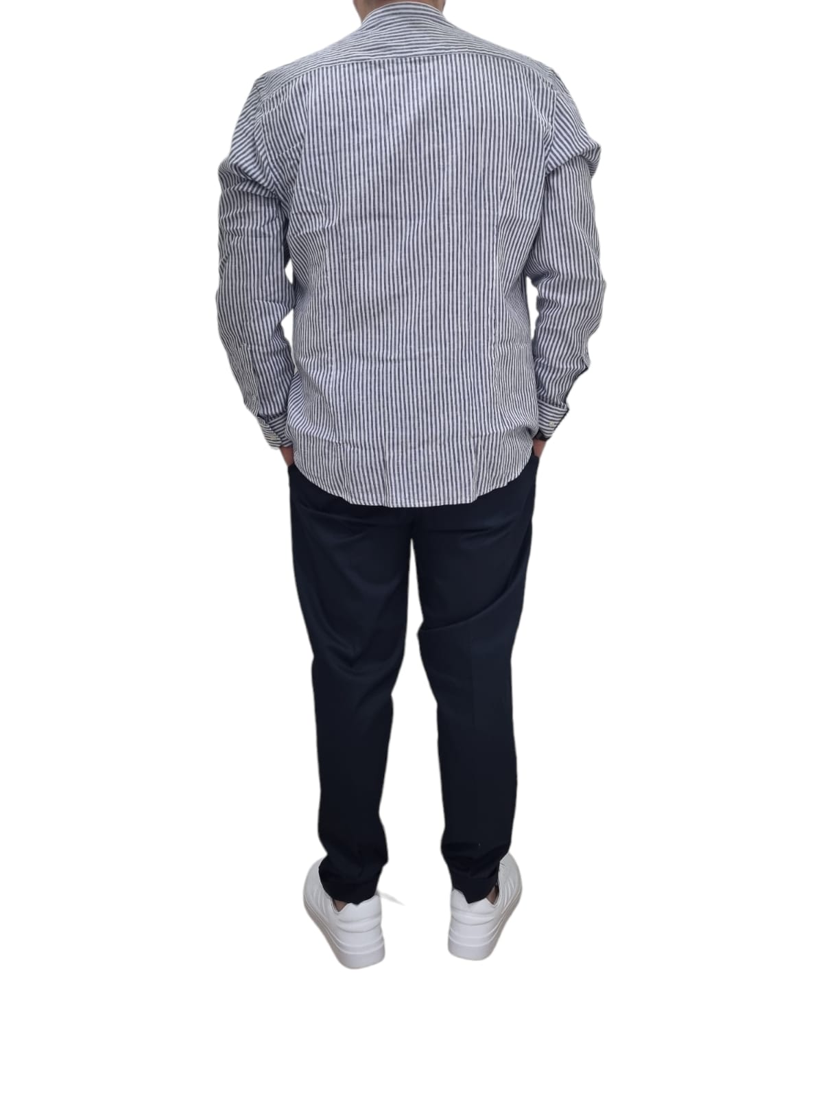 camicia riga stretta bianco e blu