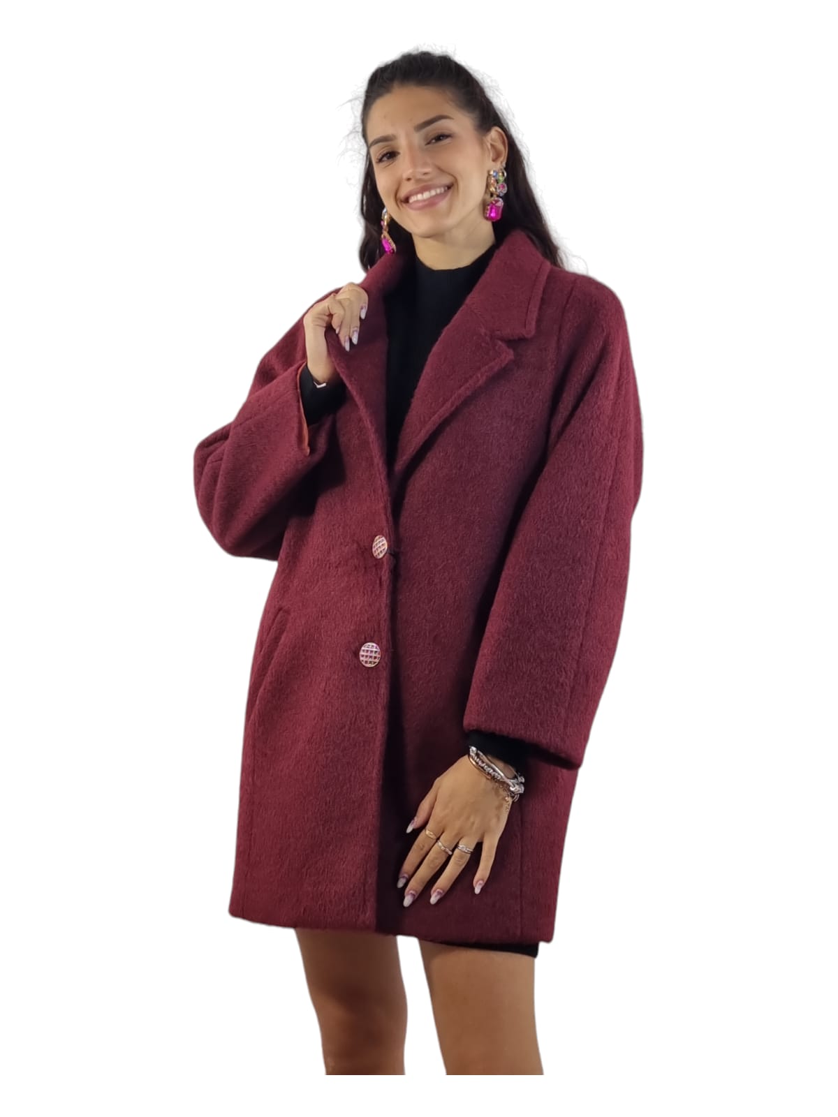 effetto peloso, bordeaux vino, monopetto, 2 bottoni
