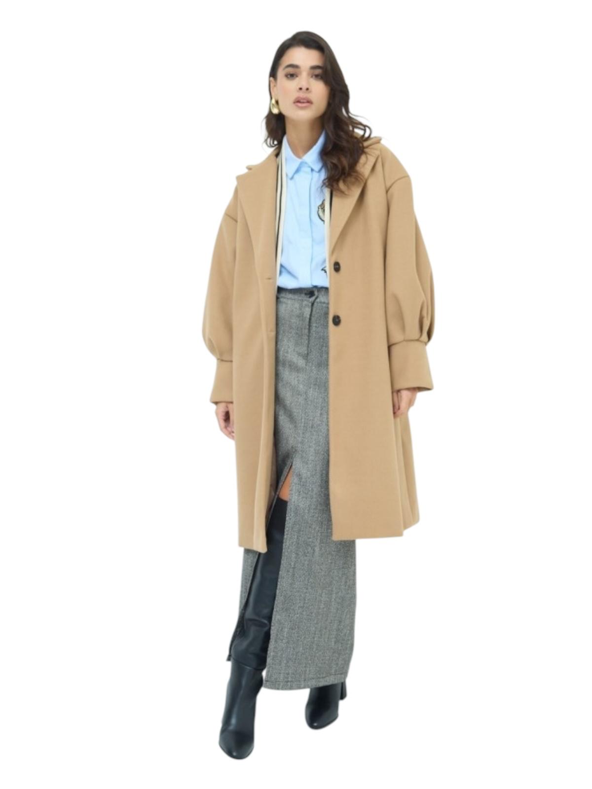 cammello, con spalla scesa e manica a palloncino