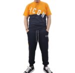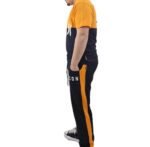 pantalone garzato nero con banda laterale arancio