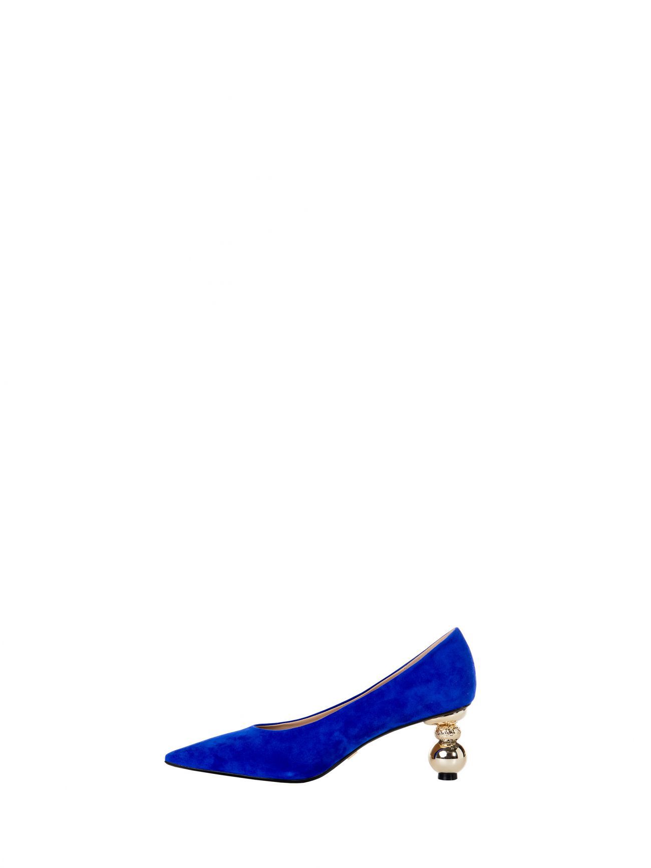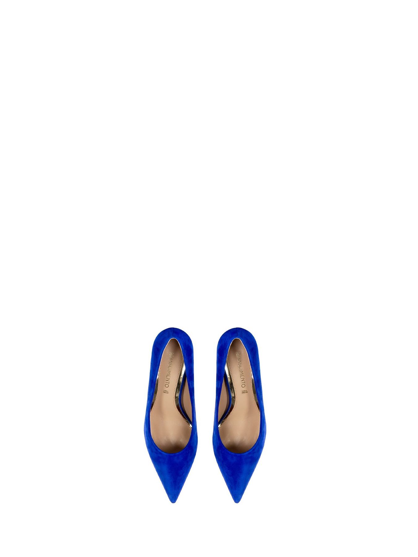 bluette scamosciato con tacco bolla dorato, alto 6cm