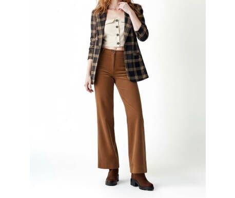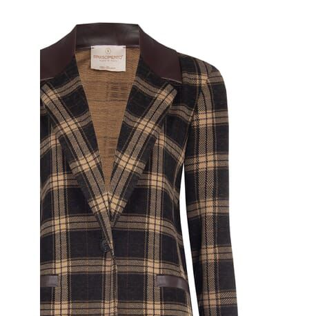 jacquard a quadri con revers e profili tasche in similpelle marroneย e chiusura monopetto