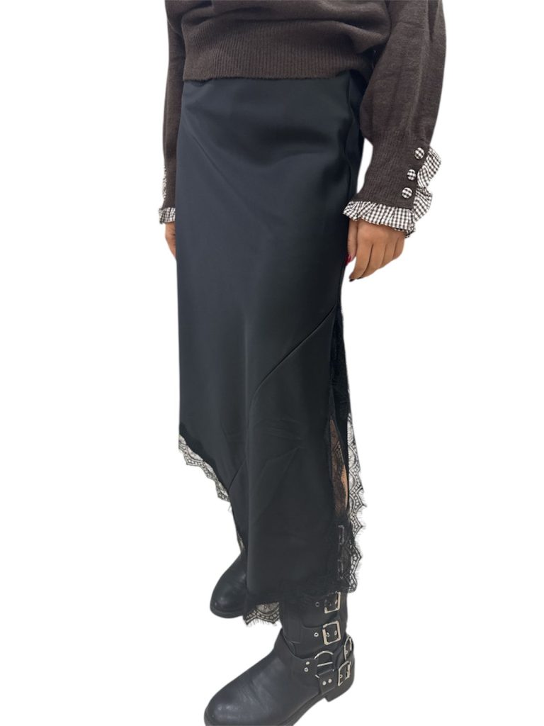 nera con pizzo nero e spacco laterale ed elastico in vita