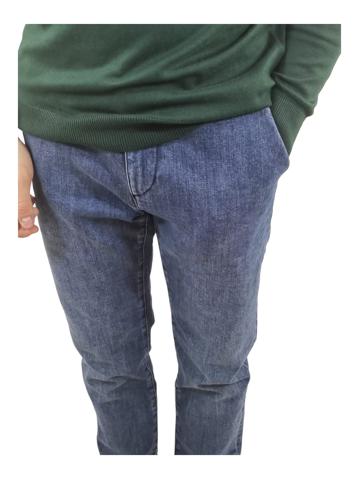 chino denim lungo, tasca a filo, blu lavaggio medio