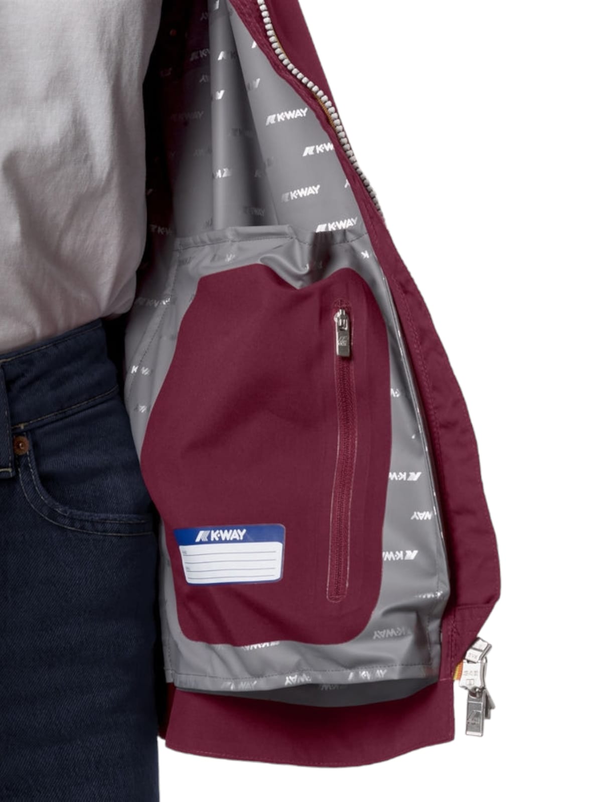 Membrana interna stampata con logo, con cappuccio, con elastico ai polsi, modello svasato