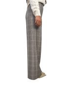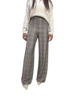 fantasia check sui toni del marrone, modello a palazzo, vita alta, con micro paillettes dorate