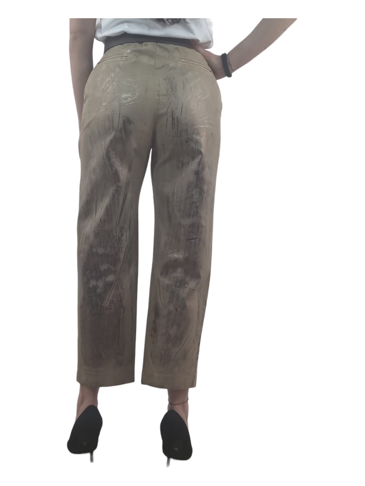 sabbia e bronzo, con pence, elastico in vita e cintura marrone