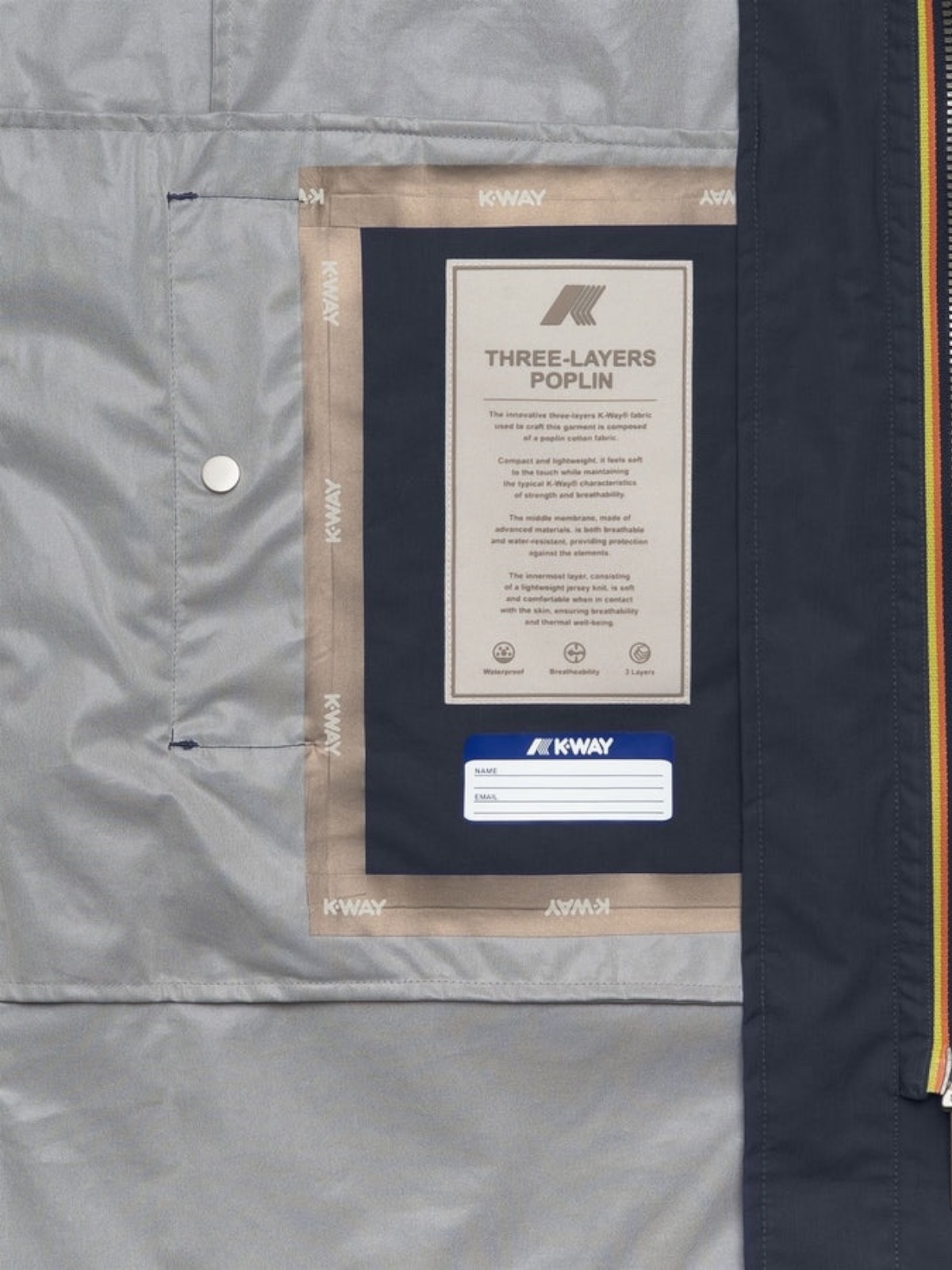 Cuciture termonastrate con lettering K-Way