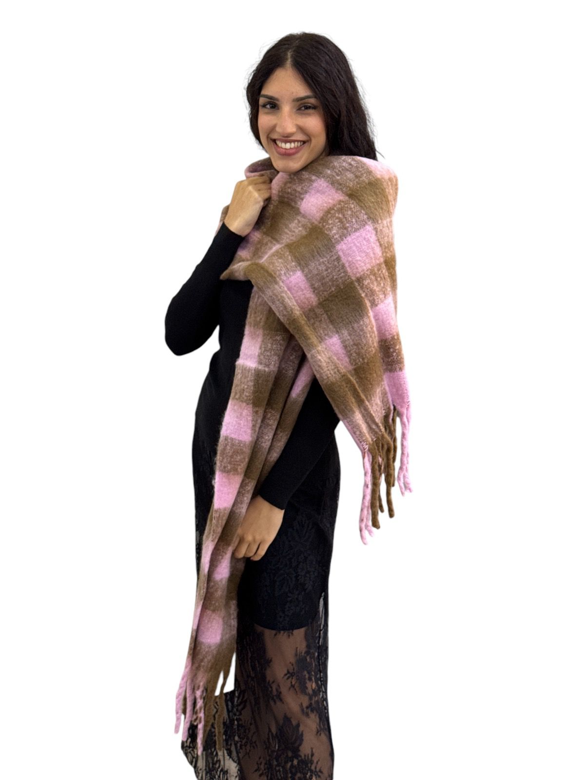 a quadri con frange, in tre opzioni di colore