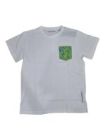 giro gola con taschino fantasia verde fluo, giallo, celeste e bluette