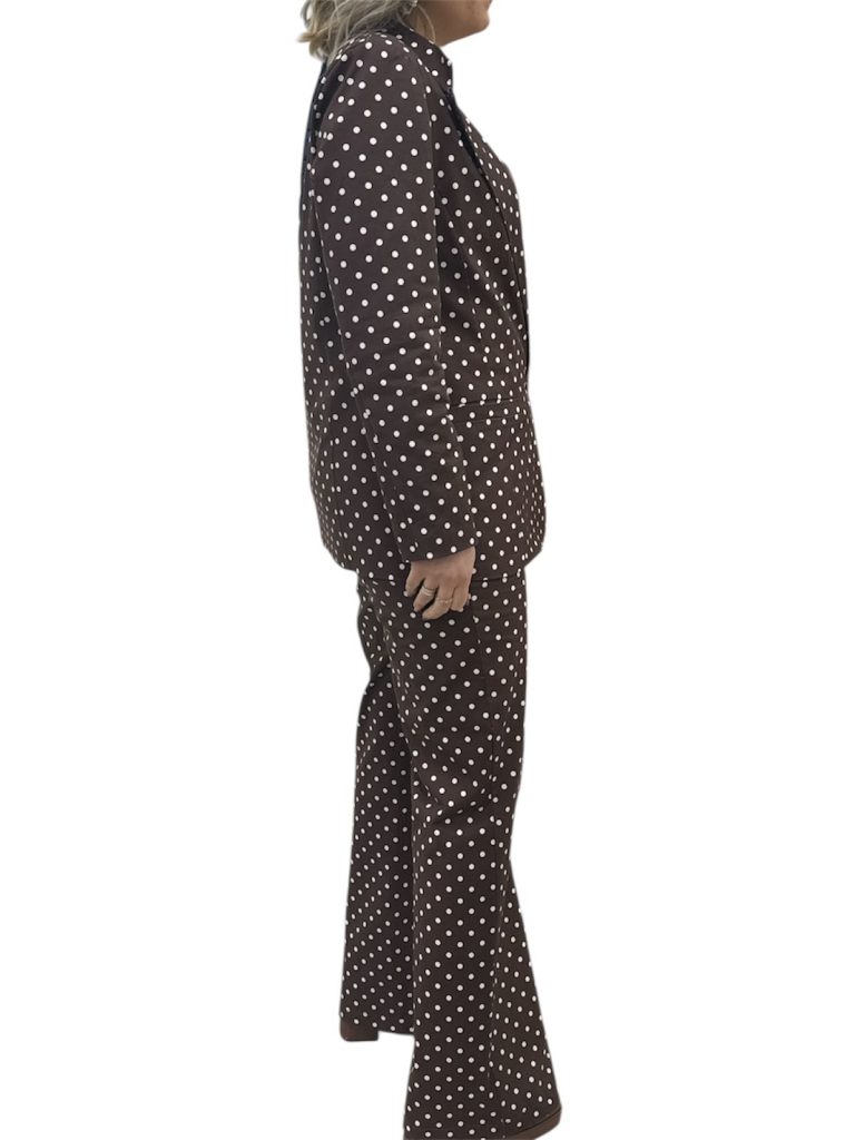 marrone e panna, giacca monopetto con tasche e pantalone palazzo